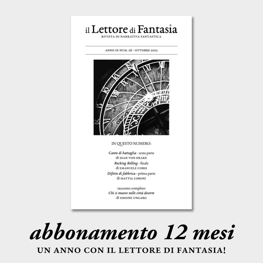 Dopo un lungo periodo di difficoltà, siamo felici di annunciare che il Lettore di Fantasia è tornato… con una formula completamente nuova in formato digitale (per ora) attraverso la piattaforma Patreon! La nostra missione, come sempre, è diffondere la letteratura fantastica e supportare gli autori italiani, ma per farlo ci serve il sostegno di tutti: abbonandoti alla nostra pagina Patreon avrai la meravigliosa occasione di aiutare gli autori italiani di narrativa fantastica… #alprezzodiunCAFFÈ!
